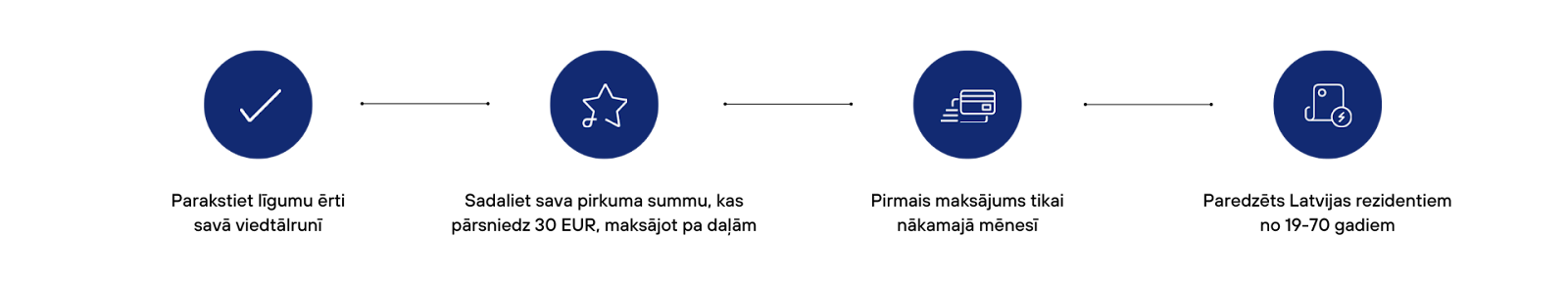 Ar ESTO 3 Jūs varat sadalīt pirkuma summu 3 vienādās daļās, maksājumus veicot 3 mēnešu laikā bez papildus maksas.